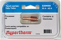 Powermax45® 45 アンペアのプラズマ電源装置は、9 月2016 に製造されたものが最後になり、Hypertherm より販売されることはありません。 オリジナルの交換トーチ、消耗部品、修理部品については Hypertherm は引き続き製造を行っています。 Duramax® トーチは、この電源装置用の使用に提供しています。